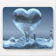 Raindrop landing in puddle and forming into a heart shape as it hits.