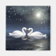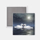 Two swans in a beautiful midnight moonlight setting with their necks forming a romantic heart magnet