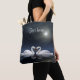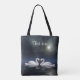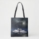 Two swans with their necks forming a heart in a beautiful moonlight background of love and romance tote bag with customisable or erasable text