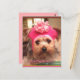 Have fun personalising this adorable Yorkie puppy wearing a pink hat postcard with your own caption Edit with your own font choice and colour when you customise.