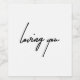 Transform any bottle of wine into a heartfelt gift with this ‘Loving You’ wine label. Perfect for anniversaries, romantic dinners, or thoughtful celebrations, this elegant label adds a touch of love and charm to your special moments. A simple yet meaningful way to say ‘I love you.