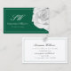 Lovingly White Rose on Green with Initials Simple Business Card