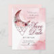 Affordable Low Budget Save the Date | NEW! Lightweight Wedding Invitations - Beautiful pink and maroon crescent moon mandala with draped beads surrounded by pink and deep crimson rose with sage foliage accents highlighted by a pale blush pink watercolor wash background - the back has your photo in a coordinating frame - theBarefootBride ™. This is part of a complete wedding stationery suite, as well as Baby Shower, Birthday and Christening Invitations. For question or assistance please contact designer indy.designer@yahoo.com.
