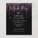 Affordable Wedding invitations don't have to be boring - Bold edgy magenta sparkly garland cascades down the page, in handwritten calligraphy is "let's do this" - couple's initials at the top - the rest of the text is simple and clean - all on a black background. Elegant wedding stationery.