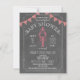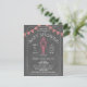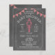 A low country boil baby shower invitation featuring an illustration of a lobster holding a pacifier. Red gingham bunting at top. Background is chalkboard inspired.