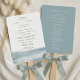 Keep guests cool and informed with this double-sided program fan from the Low Tide collection by Navy Road Creative. One side features a soft watercolor ocean design and ceremony details, while the reverse includes the wedding party on a dusty blue background. A perfect blend of style and function for beach and outdoor weddings.