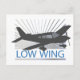 Classic vintage style aeroplane graphic - Low Wing Aircraft - makes great gifts for student pilots, flight instructors, private pilots, air craft owners and all who love aviation. Low wing aircraft are planes with the wing mounted below the main fuselage of the aircraft. The other wing mount option is a high wing where the wing crosses the fuselage at the top. In general aviation, both aircraft styles are in widespread use. For a private pilot, the choice of low wing or high wing is primarily personal preference. Aerodynamically, there is not much difference between the two wing locations.