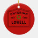 Buy one for everyone on your Christmas gift list. Christmas holidays in New England would not be complete without a festive Entering Lowell ornament. Great gift idea for someone living in the city of Lowell MA, or a Lowell neighbourhood like Belvidere, Belvidere North, Highlands Southeast, Centralville, Acre East, Lower Highlands East, Clemente Park, Highlands. Give one to your parents, grandparents, newlyweds, welcome to the neighbourhood, housewarming you name it!