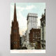 A reproduction of a vintage postcard shows the Trinity Church, Lower Broadway, and the American Surety Building, Manhattan, New York City. This item is of archival quality, high resolution of 600 ppi, it has been retouched, recolored in areas, cropped and enhanced. This assures that your item will print with the highest quality possible.