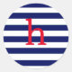 Lowercase Initial Monogram Navy Stripe Classic Round Sticker