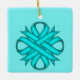 Light Blue / Teal Clover Ribbon, Square Ceramic Ornament.