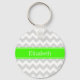 Lt Grey White Chevron Lime Green Name Monogram Key Ring