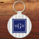 Lt Grey White Stripe Navy Square 3 Monogram Key Ring
