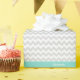 Light Grey and White Chevron ZigZag Pattern, Aqua Turquoise Ribbon Name Monogram Label