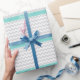 Lt Grey Wht Chevron Aqua Turquoise Name Monogram Wrapping Paper