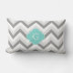 Lt Two Grey White Chevron Aqua Monogram Lumbar Cushion