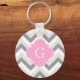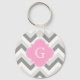 Lt Two Grey White Chevron Pink Quatrefoil Monogram Key Ring