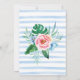 Tropical floral luau beach party. Palm leaves, monstera, peony, roses, other tropical flowers and leaves forming a beautiful frame. Bright and saturated watercolor artwork. Bold and modern pink lettering. Light blue watercolor stripes. Pink, green, blue. Perfect for summer birthday party, Hawaiian birthday party, beach birthday party etc.