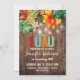 Luau birthday party design features a rustic wood background, tropical flowers, pineapple, mason jar lights, and matching back. To access advanced editing tools, please go to “Personalise” and then "click to customise further" link.
