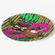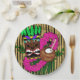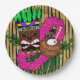 Personalise this luau birthday party plate. Plate features a Totem, Lei and Coconut drink on a tropical bamboo background.