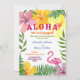 Invite guests in tropical style with this luau engagement party invitation featuring bold hibiscus flowers, palm leaves, and a playful flamingo. The double-sided design includes a QR code for RSVP, wedding website, and a photo of the couple—making it fun, functional, and beautifully personal. Ideal for beach, backyard, or destination celebrations.