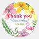 Say mahalo in tropical style with this luau engagement party thank you sticker. Featuring colourful watercolor hibiscus flowers, ferns, and a pink flamingo, this round favour sticker is perfect for sealing treat bags, boxes, or party favours. Personalise with the couple’s names and date. A festive finishing touch for any beach or Hawaiian-themed celebration.