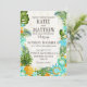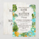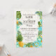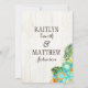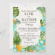 Rustic beach luau theme with tropical floral featuring plumeria, hibiscus, and pineapple wedding invitation card.