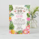 Rustic beach luau theme with tropical floral featuring plumeria, hibiscus, and pineapple sweet sixteen birthday party invitation card.