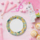 Gold and green Luau paper plates with toucans and pineapple. Coordinates with Luau Party Collection.