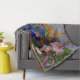 A quality printed throw has its advantages. This is a much finer weave throw than its loopier cousins, and though lighter, it is worth the investment for custom room accessorizing. The back is much prettier than the typical brown, and the fringe on the long sides very vivid, the selvage nicely done. Before photographing, I washed the throw in cold water, delicate, with a thicker woven throw the same size. On tumble dry low, this throw was dry in half the time as the other. This is a very practical quality if you use throws for furniture covers or to wrap up in frequently. The sleekness of the fabric makes it a great layer for accenting or protecting without the feeling of sitting on too much stuff. Perfect for napping or when you feel a light chill coming on. The color printing is beautiful and on this fabric, matched the design and color of my Photoshop image. This is an advantage for blending room fabrics and colors. The fringe on the short sides prints the colors from the design image and therefore varies from the side fringe. I streaked a white fractal line through the plaid pattern to give the illusion of weaving. This printed as crisp as an illusory thread, and put some white in the short side fringe, showing another advantage of print vs loomed- for artistic purposes, line lines, detail, and color integrity can be planned and preserved. My loomed throws have color limitations and more of a needlepoint texture. Print throws reproduce an exact image. The throw felt a little stiff straight out of the package, but this went away in the first delicate wash. Of course I searched the wash water for ink or bleeding and there was none.