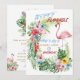 Elegant and unique design featuring exotic tropical flowers wreath and bouquets with flamingo and tropical fruits, ice cream, beverage, pool party items. Use Personalise tool to add your info. For matching items, please, visit my Tropical Birthday Collection.