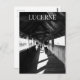 Lucerne Chapel Bridge + Tourists Switzerland BW Postcard