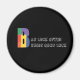 Magnet featuring the saying "Bad luck often brings good luck" in black lettering. This minimalist design incorporates geometric shapes and colorful typography. The magnet serves as a reminder that even unfavorable situations can lead to positive outcomes. The phrase is a statement on the interconnectedness of misfortune and fortune. The design's simplicity makes it visually appealing, while the message provides encouragement and a different perspective. The color and geometric elements add visual interest to the typography.