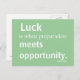 Black and white postcard motivation and encouragement. "luck is when preparation meets opportunity." - Paul Fargis