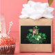 Red haired Irish Fairy all decked out in green for St. Patricks Day. She has her pot of gold and green clovers around her.