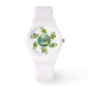 Cute Irish shamrocks holding Ireland flags surrounding a globe with "Luck o' the Irish" on the inside. Designed by Simply Put by Robin; shamrock image licensed and © Graphics Factory.com