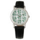 Women’s classic black leather strap watch with the word "Lucky" printed here and there on a background of pretty green shamrocks on white. See matching round button, square charm, large square premium metal keychain, square double-sided acrylic keychain and square necklace. See the entire St. Patrick's Day Watch collection under the ACCESSORIES category in the HOLIDAYS section.