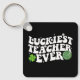 Luckiest Teacher Ever Disco Ball Shamrock Groovy Key Ring