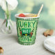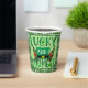 Lucky and I Gnome It St Patrick's Day Party Paper Cups. Funny quote image with a large green hat and two gnomes wearing green plaid. Green plaid wrapped around. Personalise this template.