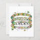A colourful illustration of beaded bracelets in green, pink, yellow, and orange, featuring charm-like icons such as clovers, a horseshoe, a leprechaun hat, a pot of gold, a rainbow, and a bow. The central bracelet spells out “LUCKY,” making it a fun and festive design for celebrating St. Patrick’s Day and spreading good vibes.