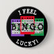 Lucky BINGO Button with Bingo cards red green purple.I feel lucky!