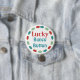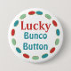 Colourful Lucky button features a graphic geometric design in retro colours. Use this good luck button at your next Bunco event, soccer tournament, Bingo night, game night, casino night, sports event, election, golf game and more. Change text message to fit your own personality!.