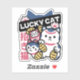 This cute Japanese lucky cat design features a Maneki Neko holding gold coins, accompanied by a Daruma doll, cat paws, and Japanese text symbolizing good fortune and prosperity. Perfect for fans of Japanese culture, kawaii art, and good luck symbols. Ideal for stickers, T-shirts, hoodies, mugs, and gifts that bring positive vibes, success, and happiness.