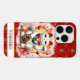 Lucky Cat With Red Flowers Monogrammed Case-Mate iPhone Case