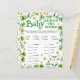 Add a fun global twist to your Irish-themed baby shower with this "Baby Around the World" game card! Guests match languages to the word "baby" in a shamrock-accented challenge that's perfect for celebrating your little lucky charm. Entertaining, educational, and great for St. Patrick’s Day parties or green-themed showers.