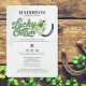 Celebrate the arrival of a lucky little charm with this elegant baby shower invitation. Featuring a soft, faint watercolor green background, it offers a sophisticated take on the Lucky Charm theme. The words "Lucky Charm" are beautifully scripted, accented with a delicate horseshoe and adorned with four-leaf clovers, symbolizing luck and new beginnings. Perfect for those seeking a refined, yet whimsical celebration, this invitation sets the tone for a joyful and memorable event. Add your event details and get ready to shower the mom or parents-to-be with love and well wishes!