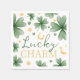 Complete your table setting with these elegant lucky charm napkins. Decorated with green watercolor clovers and gold horseshoe accents. Ideal for serving snacks at a lucky-themed or St. Patrick's Day baby shower.