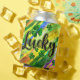 This vibrant can cooler features a colourful, streaked background with shades of green, yellow, orange, and blue. The word "Lucky" is prominently displayed in bold, black, glittery letters. Surrounding the text are multiple green shamrocks and sparkling yellow stars, adding a festive and cheerful touch. This design is perfect for celebrating St. Patrick's Day or bringing a bit of luck to any occasion.