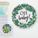 Blue four leaf clover themed boy baby shower paper plates with Oh baby! in a charming script and elegant font with a wreath of four leaf clovers and blue clover flowers. St Patrick's day boy baby shower paper plates with lucky clovers, flowers, and charming fonts. Charming lucky charm boy baby shower paper plates with OH baby written inside a four leaf clover wreath with blue clovers.