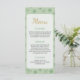 Showcase your shower feast with this elegant 4x9 menu card. Featuring watercolor shamrocks and gold script for a sophisticated dining experience. Perfectly matches the "A Little Lucky Charm" baby shower collection for a cohesive look.